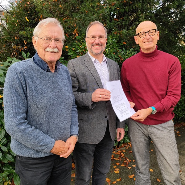 Der Vorsitzende und der Stellv. Vorsitzende des Stiftungsvorstands, Manfred Strieth und Heinz Müting, haben jetzt den entsprechenden Förderbescheid an Felix Staffehl von der Geschäftsführung der Christliche Hospize im Kreis Soest gGmbH überreicht.